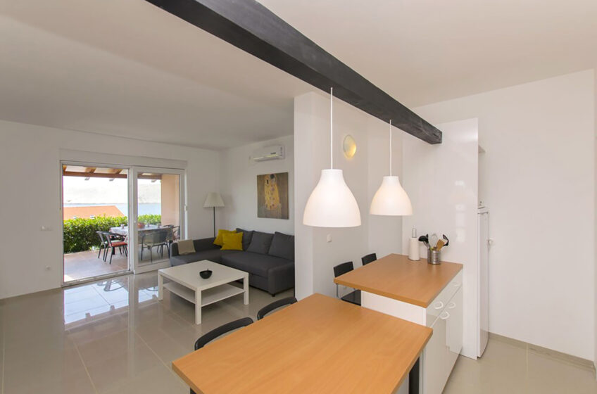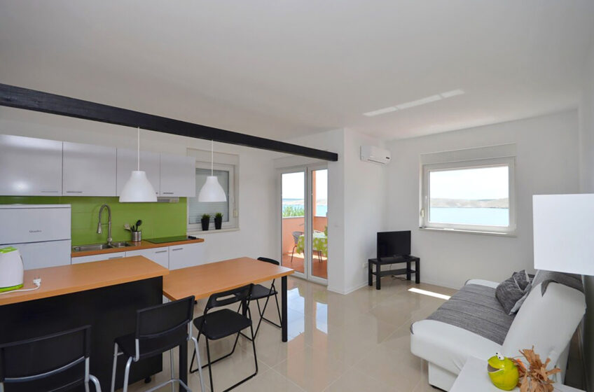 The apartment, which can accommodate a total of 4 + 1 people, offers spacious rooms and a well-equipped kitchen and bathroom on a surface area of 49 square meters.